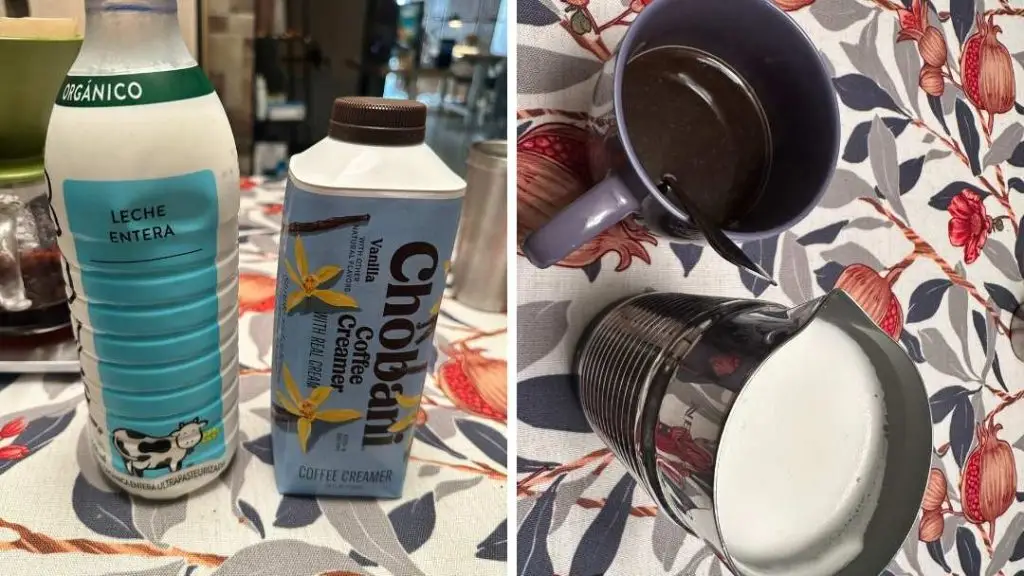 To the frother, add about 40ml of regular milk and about 80ml of chobani french vanilla creamer. Press the hot foam option for MAX foam because we like our foam here. I do anyway.