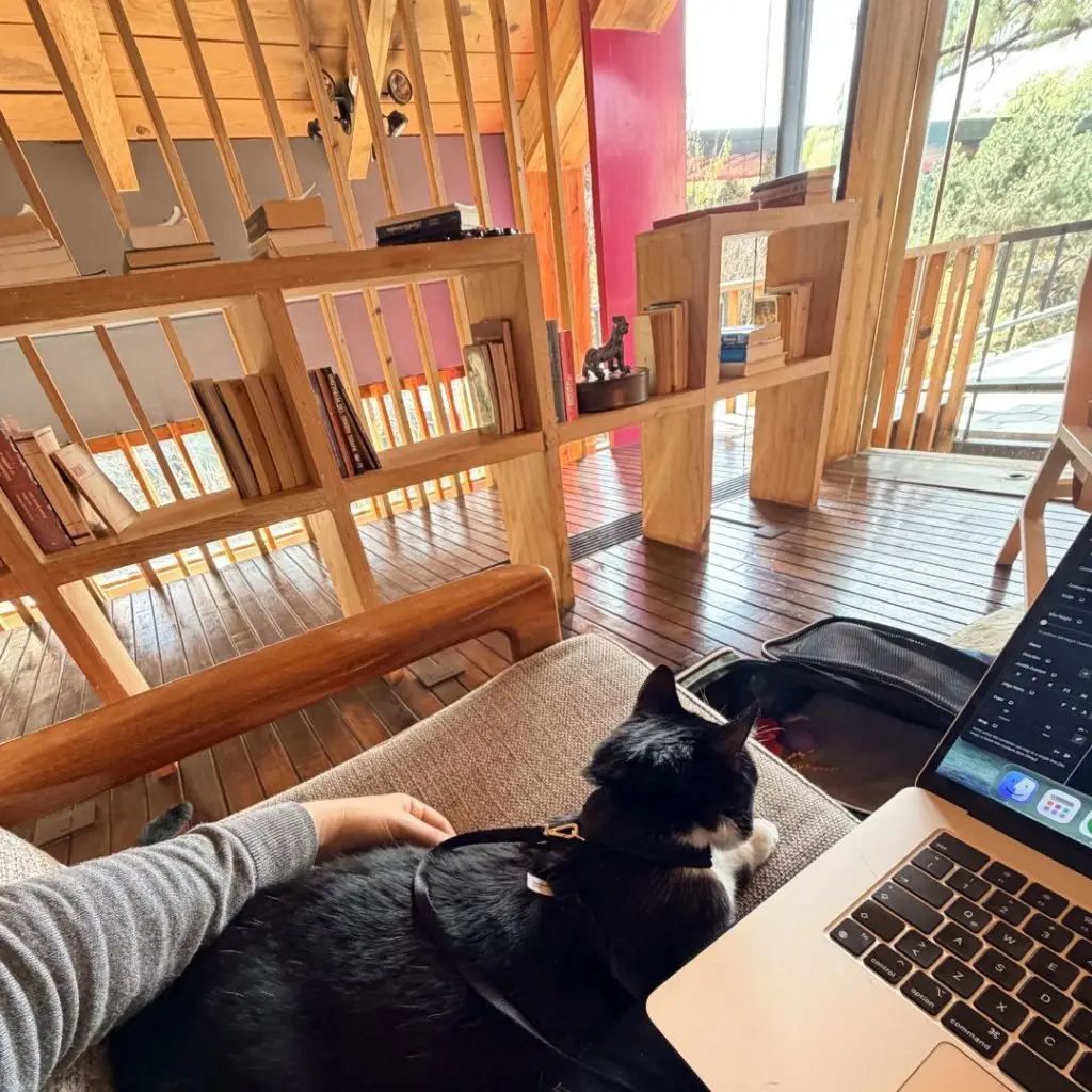 But when I travel with her, sure she can at times complain (I’ve found ways to make her comfortable that I will share) but man every time we arrive to where we are headed she is just so thankful to be there. Happy to not be sleeping alone. As I type, shes sitting on my feet as I sit cross legged in my chair. Velcro cat to the max. I even have a stool next to mine thats for her, so she can sit next to me while I work though I’ll be honest when I say generally my feet are numb with her sitting on them. If you need evidence of her velcro nature, the above photo should do it.